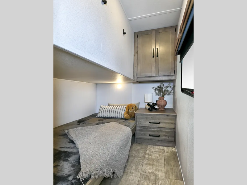 Sleeps 8 Length 30 ft 2 in Ext Width 8 ft Ext Height 11 ft 1 in Int Height 6 ft 8 in Interior Color Granite, Cafe Latte, Slate Hitch Weight 695 lbs GVWR 6903 lbs Dry Weight 5403 lbs Cargo Capacity 1500 lbs Fresh Water Capacity 43 gals Grey Water Capacity 70 gals Black Water Capacity 35 gals Furnace BTU 35000 btu Number Of Bunks 2 Available Beds RV Queen Refrigerator Type 12V Stainless Steel Refrigerator Size 11 cu ft Cooktop Burners 3 Shower Size 32" x 40" Number of Awnings 1 LP Tank Capacity 20 lbs Water Heater Capacity 6 gal Water Heater Type Gas/Electric AC BTU 13500 btu Awning Info 19' Electric with LED Lights Axle Count 2 Number of LP Tanks 2 Shower Type Shower w/Seat Similar Floorplans